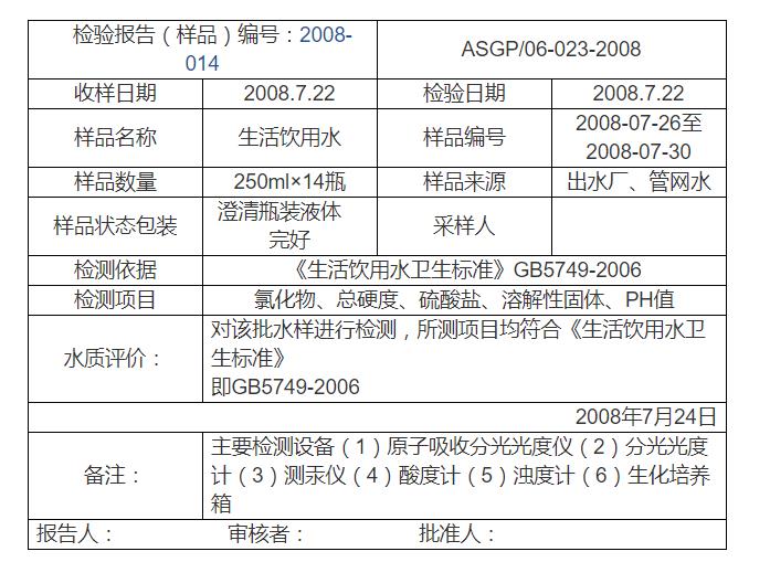 出具水質(zhì)報告